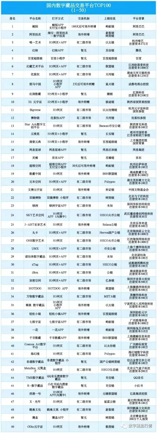 任何新技术的发展,既需要包容又不能纵容,既需要创新也不能出界。随着国内NFT去币化,更名“数字藏品”,行业法律性质、监督主体将逐步明确。在国内,去年10月网传监管部门加强了对互联网企业发行NFT以及建立NFT平台的监管力度,并约谈了部分互联网企业。2021年10月23日,蚂蚁链平台以及幻核内页中NFT字全部消失,一律改为数字藏品。根据其页面介绍显示,蚂蚁链对数字藏品的定义为:虚拟数字商品;腾讯的幻核则将数字藏品定义为:虚拟权益证明。上述两个平台都强调数字藏品不具备虚拟货币的属性。同时,双方都强调作为虚拟物品,数字藏品一经兑换/购买,并不支持退换。与此同时,为打击炒作的现象,2021年10月31日,国家版权交易中心联盟、中国美术学院、蚂蚁集团、腾讯等大机构共同发布了《数字文创行业自律公约》。在公约中明确表示将抵制任何形式的以数字文创作品为噱头,实质发行和炒作虚拟货币的行为且抵制任何形式的数字文创作品价格恶意炒作,防范投机炒作和金融化风险。今年以来,多个平台继续收紧相关规则。最近,蚂蚁集团和腾讯官方都缩紧了对数字藏品平台的要求。3月29日,微信客户端中多家与数字藏品相关的公众号被封禁,涉及的平台超十个,均为中小型数字藏品平台,腾讯幻核等头部平台未受影响。据不完全统计,包括Art Meta元艺数、一点数藏、归藏元宇宙、画生 Meta、元本空间、神达数藏、One Meta、零号地球、iBox 和诺坊体等公众号均被封禁。据悉,大部分平台皆被提示为“由用户投诉并经平台审核,存在未取得法定许可证件或牌照,发布、传播或从事相关经营活动的行为,账号已被停止使用”。部分平台的封禁理由是涉嫌欺诈。而鲸探也在新隐私条款中,提升了针对违规操作的惩罚用户处罚上限。据此前信息,因私底下交易数字藏品,鲸探以“限定转增”的方法惩罚了56名用户。鲸探在最新上线的的服务合同中表明,发觉客户在平台以外以涉嫌犯罪活动的方式组织交易,或者运用外挂软件抢购数字藏品涉嫌犯罪的,将“警报并转交司法部门解决”。有分析认为,在开放赠送和二次交易的模式下,平台将面临构成代币发行、非法集资甚至洗钱等刑事风险。