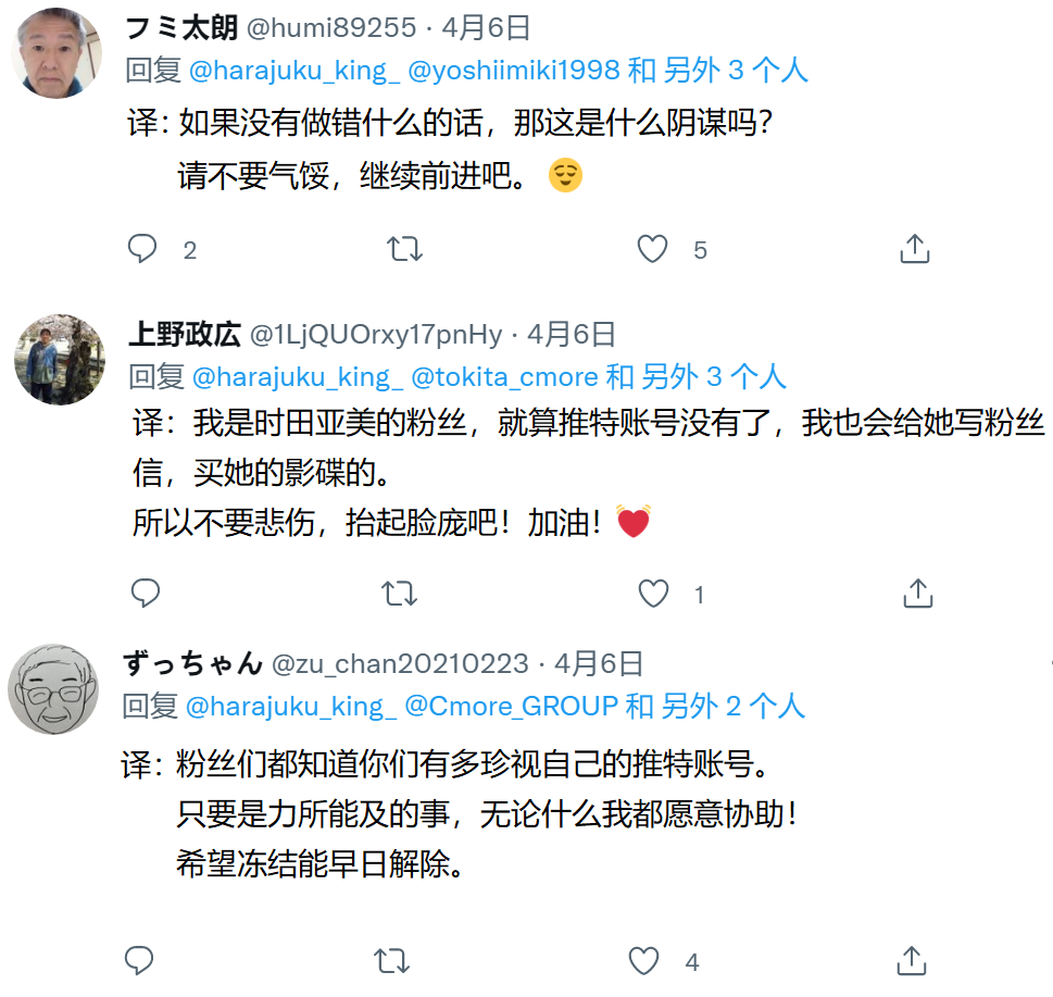 这几家事务所都很快发公告表示已经注意到事态发展,正全力与推特沟通,相信能恢复旗下女优们的账号。