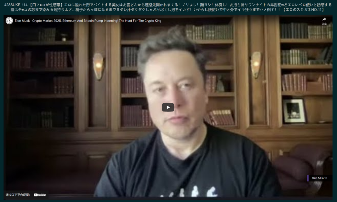 另一方面,由于马斯克也是币圈的风云人物,油管上许多炒币视频都会拿他用作封面吸引点击。而或许是由于受众重合度高,这些视频又时常成为一些日本AV网站的贴片广告——结果就导致马斯克的形象总是伴随着各种露骨的AV标题出现在成人影片的位置,这似乎也能成为他打击报复的动机。