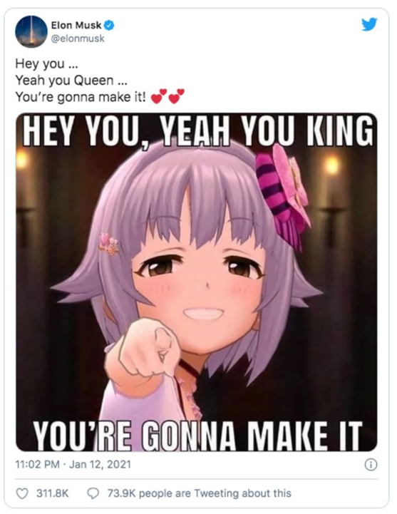 马斯克曾在推特上唐突地发出《偶像大师》系列中角色的照片,因此被认作是“二次元”