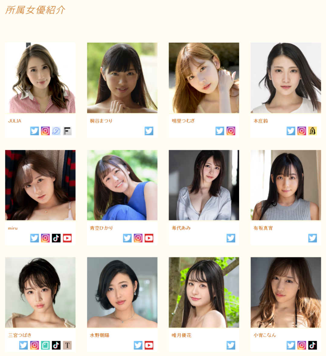 C-MORE事务所在介绍旗下女优时就会附带她们各个社交网站的链接,官网本身只留下简单的介绍