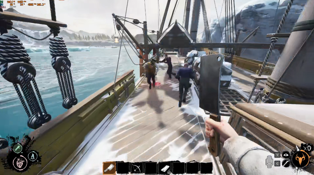 为了加深扮演代入感,《恐惧饥荒》更是采用第一人称视角,同样是以生存为主,玩家需要在恶劣的环境中去野外搜集资源和储备道具物品,同时融入了传统RPG,玩家身份进一步细化,扮演船长、厨师、工程师共8种职业角色,在航海过程中各司其职,通过获取煤炭资源作为动力,在有限的时间内合作将船驶将终点。