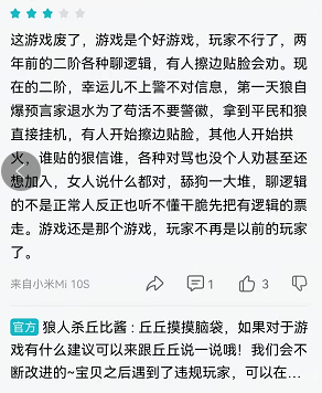另外,线上狼人杀多为陌生人社交,在整个游戏体验过程中也可能会出现不好掌控的状况。