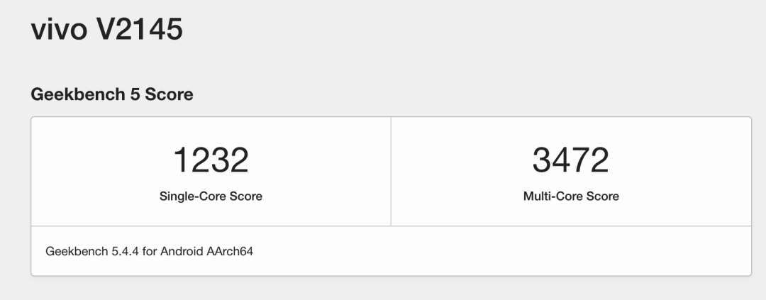 最新的一份跑分成绩显示,在Geekbench 5.4.4基准下,其单核得分1232分、多核成绩3472分,同样拥有 12GB 内存、运行基于 Android 12 的操作系统。