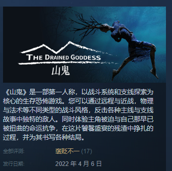 唯一遗憾的是,PC端第一人称视角的恐怖冒险游戏较少。只有一款名为《山鬼》的游戏,第一人称的生存类恐怖游戏类型,目前褒贬不一。像《纸人》《港诡实录》类似的3D冒险恐怖话题作许久未有。
