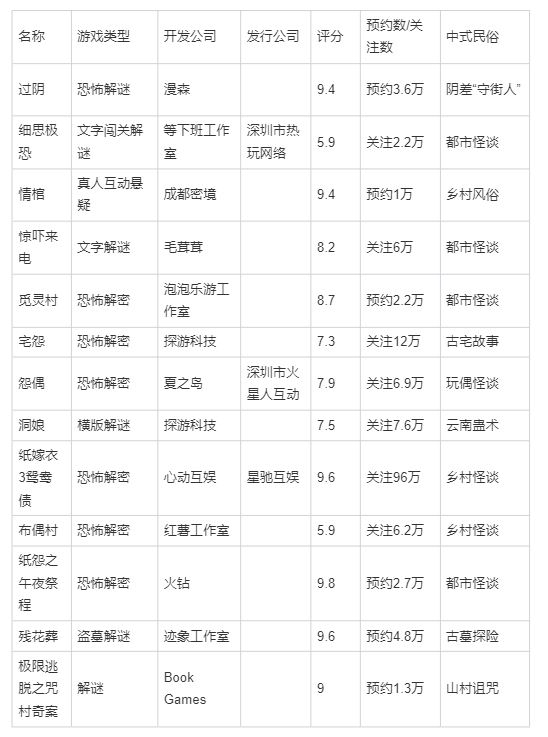 恐怖游戏体量小,大多游玩体验在5小时内,这也意味着玩家很快就能体验完多款相关游戏,10余款的手游数量其实未能满足玩家的需求。玩家需要更多的中式恐怖游戏,但也需要游戏视角转向“中式民俗”的更多方向。