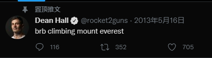 至今,霍尔还把这段登顶珠峰的经历置顶在推特页面上。或许对他来说,自己一生中最成功的项目,并不一定非得是《DayZ》。