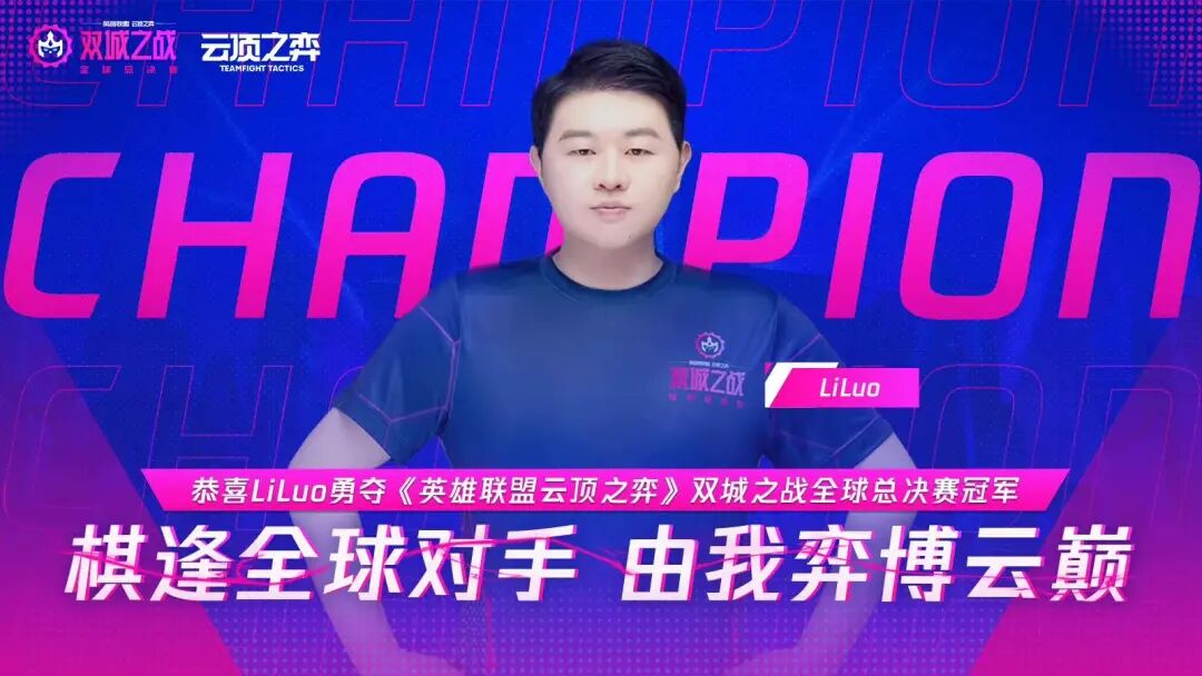 最终LiLuo选手在本届《云顶之弈》双城之战全球总决赛中夺得冠军。同时LiuLi选手获得本次全球总决赛亚军。这是中国大陆赛区在《云顶之弈》世界赛上连续两届包揽冠亚军,今天我们再次向世界证明:“CN TFT NO.1”。