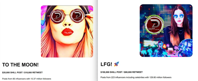 Dapp Center向潜在客户提供了一些网红套餐。这家营销公司的网站最近删除了“网红”页面。
