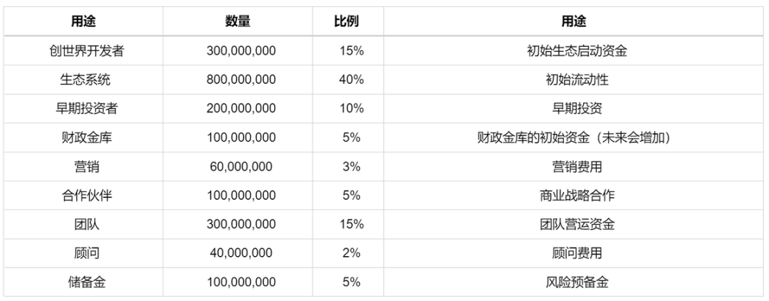 下图为代币的分配和用途: