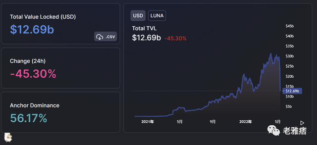 这就处于一种十分尴尬的境地,当Luna与UST的流通市值在相当接近的情况下(实际现在就是),如果LUNA的二级市场价格继续出现下跌,UST的流通市值可能就会超过Luna。