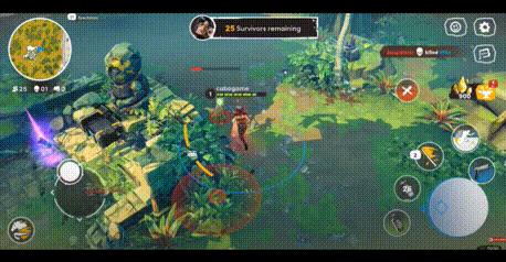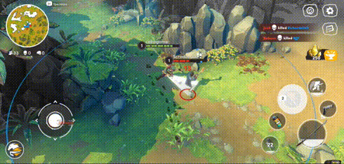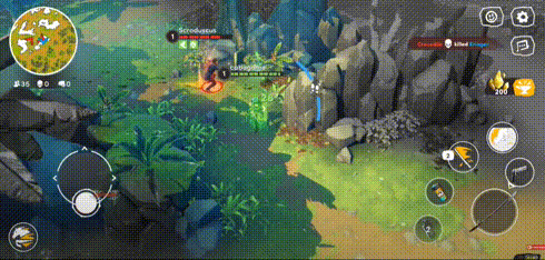 当然,理论和实践还是有所差别的,在实际战斗中,技能、普攻以及道具几乎都是非指向技能,需要玩家手动瞄准目标,因此《Wild Arena Survivors》采用了俯视角而非其他常见视角——虽然这种视角更多被应用于Q版风格的、休闲向的游戏中,如Supercell的《荒野乱斗》、创梦天地的《小动物之星》,但其好处在于玩家无需频繁操作屏幕视野,能够专心于作战、搜集之上;在释放技能时,俯视角也能将画面与反馈数值更好的传达给操作者。
