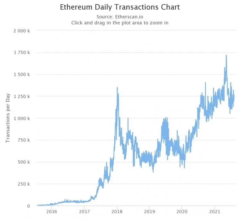 图 | 以太坊同期日交易量只是稳定在 120 万笔(来源:Etherscan.io)