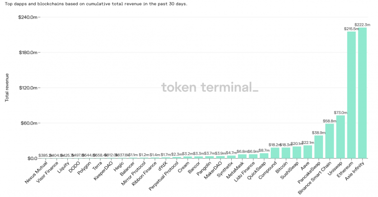 完美的匹配但对大多数加密货币领域的人来说,游戏和加密货币的结合似乎是一种完美的结合。量化交易公司 Efficient Frontier 的高管安德鲁·图(Andrew Tu)告诉 CoinDesk:“加密货币行业一直在寻找大众市场的使用案例。长期以来,人们一直在炒作游戏领域。这是第一个不了解加密或区块链的普通人可以参与的加密货币领域。”事实上,据 Token Terminal 的数据显示,在过去 30 天里,以太坊上流行的加密货币游戏平台“Axie Infinity”已经产生了超过 2.2 亿美元的收入,使其成为所有 DeFi 协议和区块链(包括以太坊)中收入的最高者。数字资产数据分析公司 the Tie 的研究分析师贾斯汀·巴洛(Justin Barlow)表示:“Axie Infinity 还展示了基于区块链的游戏的可用案例,为进入该领域的新参与者铺平了道路。随着 Axie Infinity 的成功,我们可能会看到动视暴雪(Activision Blizzard)或艺电(EA)等大型游戏集团在未来几年进入这一领域,将区块链游戏带给大众。”热门的 GameFi 行业也存在风险,因为它发展得非常迅速。