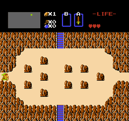 比如“卷轴滚动”这个现代玩家稍显陌生的术语,指的是2D游戏中的场景(背景卷轴)可以随着玩家的移动而同步移动(滚动)。在今天看来,这么做简直太正常了,仿佛2D游戏诞生之初就理应这样。但实际上,早年的2D游戏,卷轴都是固定的,玩家要走到当前场景的末端,场景才会像舞台幕布一样切换到“下一幕”,伴随着不自然的暂停。举例来说,2D ARPG的祖师爷《塞尔达传说》初代,便是固定卷轴的代表: