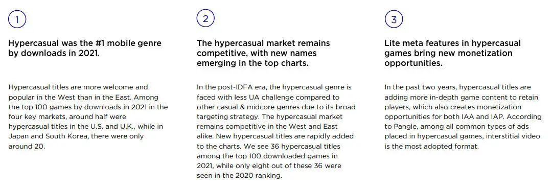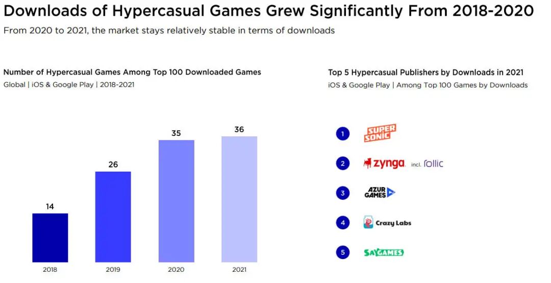 2021年全球前100名游戏的总下载量中,超休闲游戏占30%以上