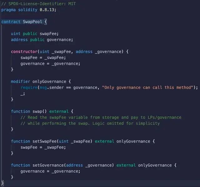 这很有用,因为它可以让你修补逻辑错误,而不会丢失任何重要的存储环境。这也是相当有表现力的。治理者可以部署他们想要的任何逻辑,包括恶意行为,如无限铸币或烧毁特定持有人的代币,或意外地部署一个合约升级,巨大的权力伴随着巨大的责任。