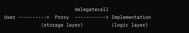 包含存储上下文的合约被称为 "代理合约",而包含字节码实现的合约被称为 "逻辑合约"。第三方用户将对代理合同进行调用,然后它将在引擎盖下获取逻辑合同的字节码,并在代理的存储上下文中执行。