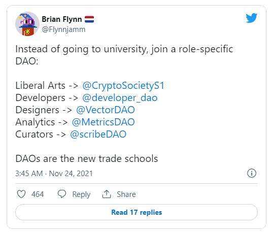 不难看出,DAO 是我们现有教育体系的下一个进化方向。