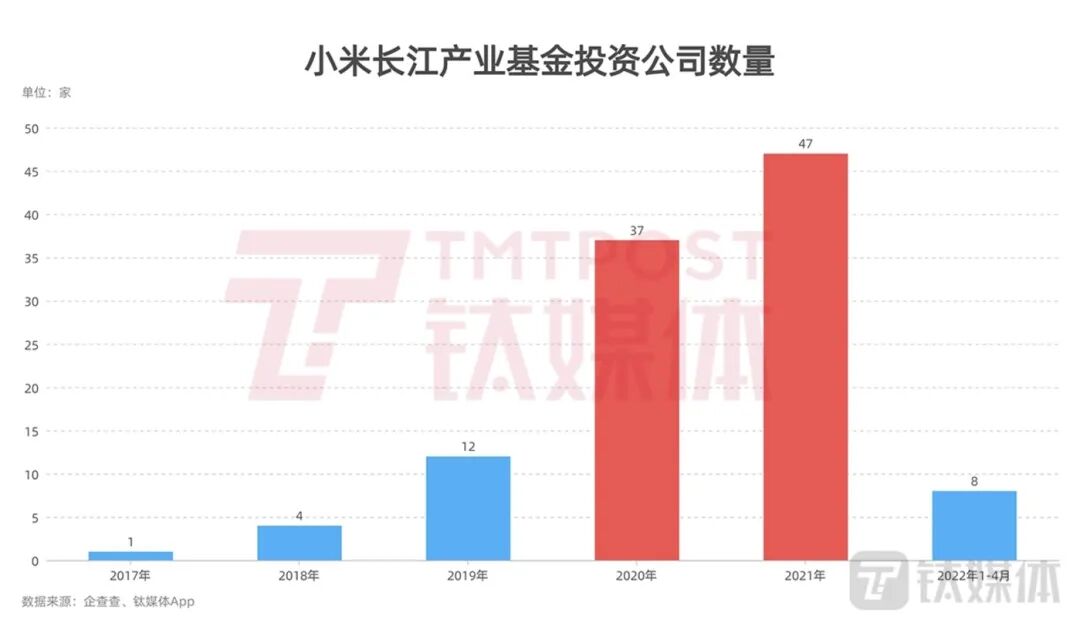 ▎根据钛媒体App 获得的独家数据显示,自2017年成立以来,小米产投共投资了110家芯片半导体与电子相关企业,仅2021年,小米产投就通过战略性投资47家芯片半导体与电子领域公司。