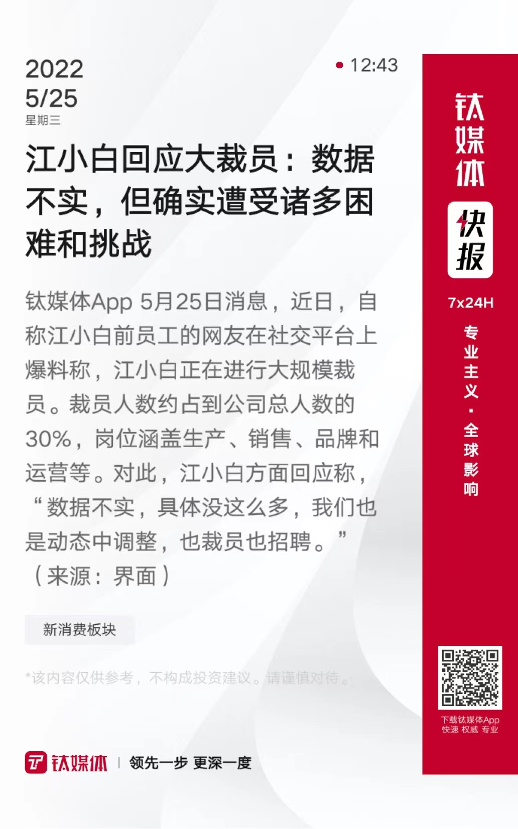 江小白回应大裁员:数据不实,但确实遭受诸多困难和挑战
