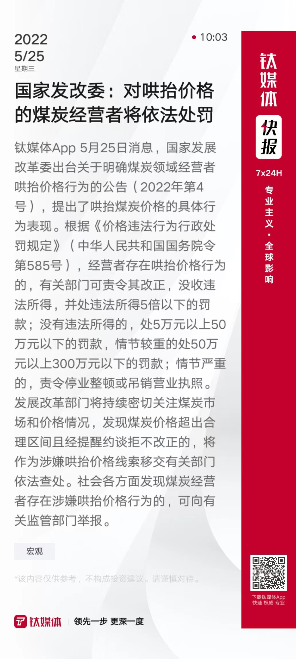 国家发改委:对哄抬价格的煤炭经营者将依法处罚