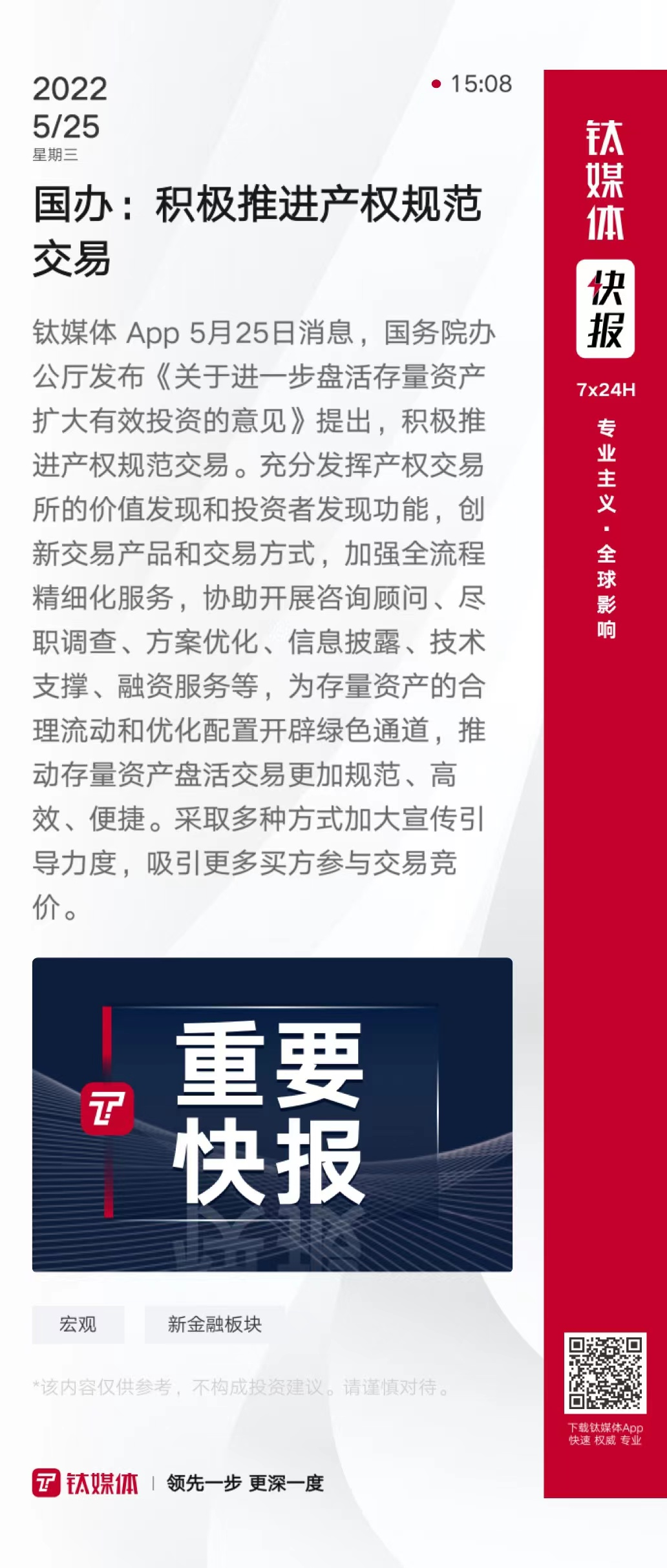 国办:积极探索通过资产证券化等市场化方式盘活存量资产