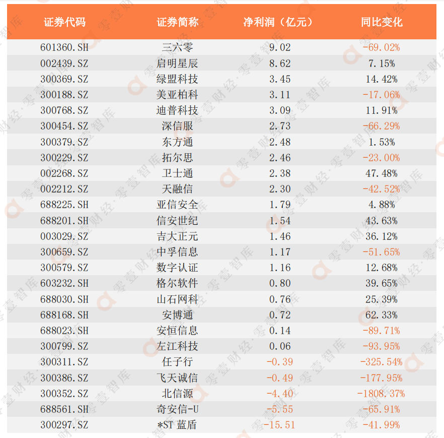 表1:25家网络安全公司净利润排行榜