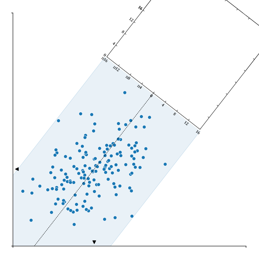 #画一个矩形,围绕分布和朝向主成分分析主轴
