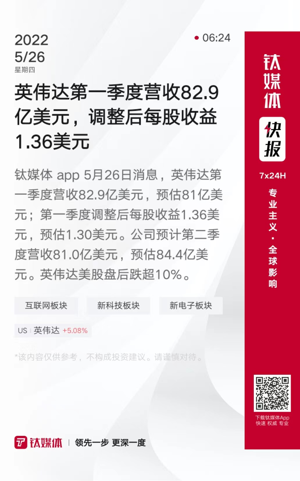 英伟达第一季度营收82.9亿美元,调整后每股收益1.36美元