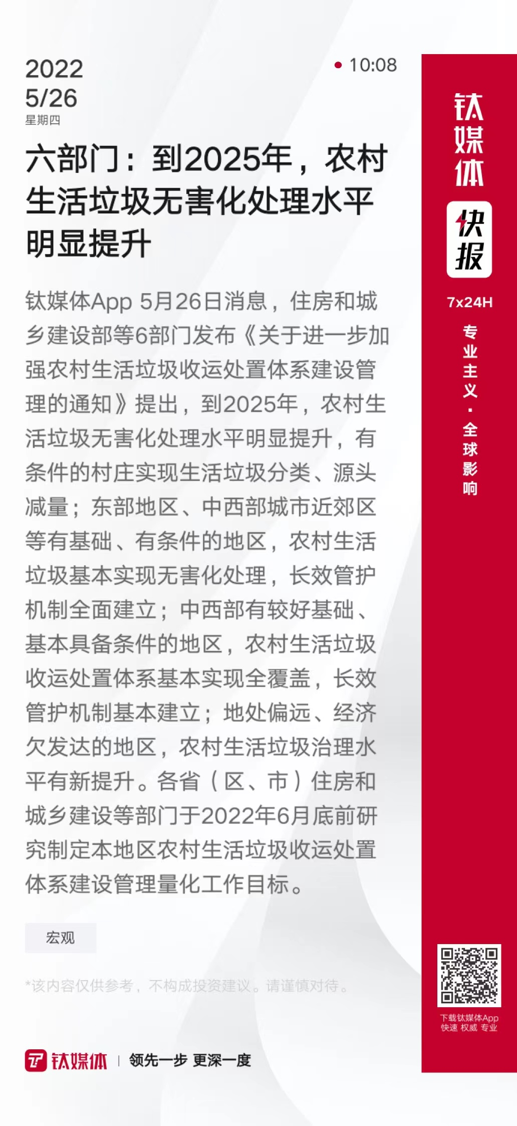 六部门:到2025年,农村生活垃圾无害化处理水平明显提升