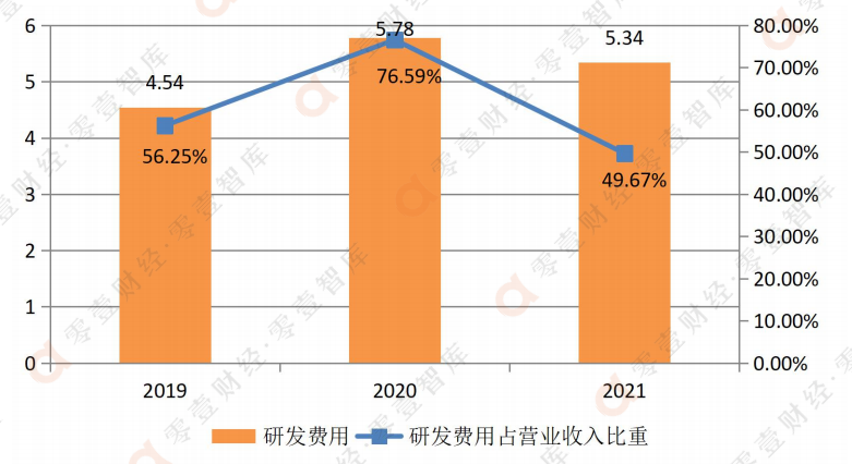 云从科技展现了高科技企业高研发投入的典型特征。2019年至2021年,云从科技的研发费用分别为4.54亿元、5.78亿元和5.34亿元,占各期营业收入的比例分别为56.25%、76.59%和49.67%。2021年研发费用同比略有减少,云从科技财务总监兼董秘李胜刚表示:“高研发投入是公司持续保持技术领先的重要支撑,未来公司仍将持续加大研发投入,加强技术研发和创新,提升公司竞争力”。