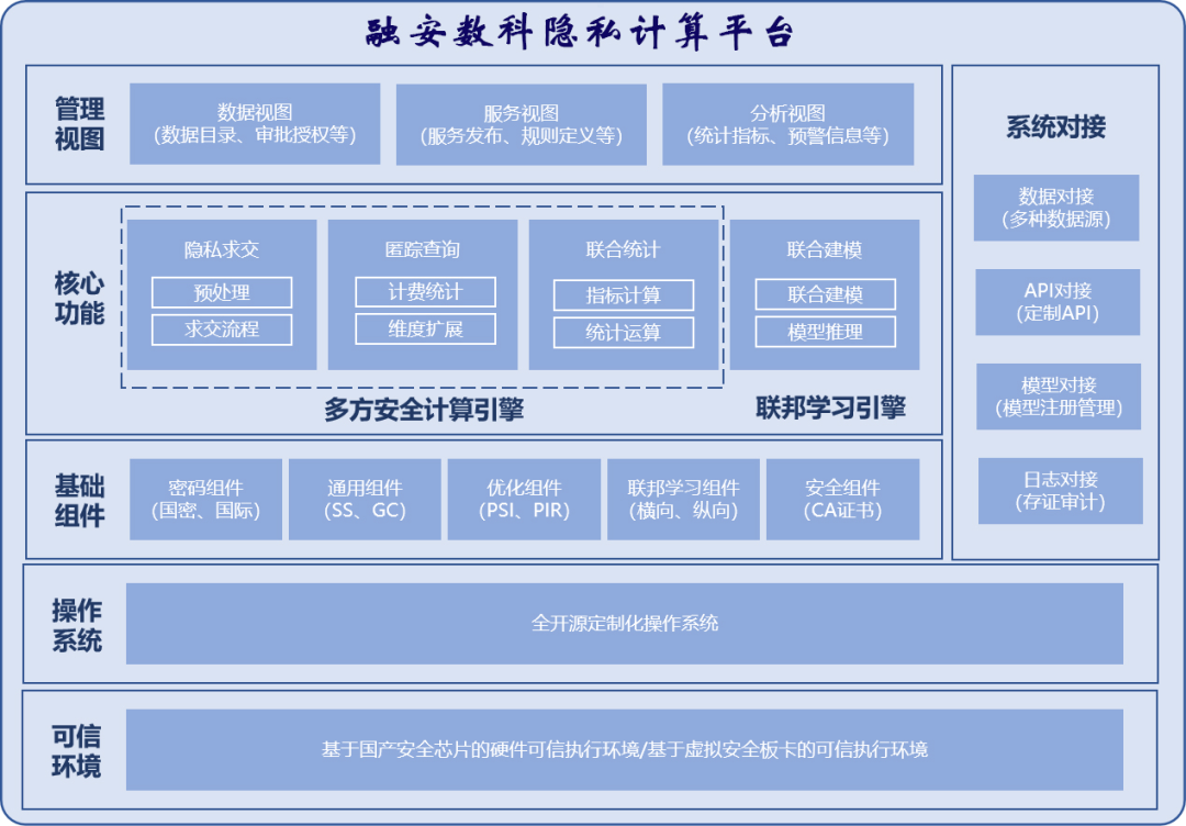 密文流通监管,是融安数科的隐私计算产品所具备的独特功能。密文流通监管,顾名思义,就是用来监督数据在密文状态下的合法合规流通情况。为了支持密文流通监管,融安数科储备了一系列的技术和专利,其中包括:目标函数隐私度量技术、授权完整性核验技术、模型一致性核验技术、数据一致性核验技术、计量计费技术、存证及争议处理技术等。之所以进行密文流通监管相关技术的研发,与融安数科的背景密切相关。融安数科创始人李登峰深知安全的重要性。他学密码学出身,毕业于中国密码学人才聚集地之一中科院软件所。毕业之后,曾先后在中国银联和上海银行工作,做的都是与支付安全相关的工作。在隐私计算出现之前,支付安全是密码学在商用场景中最大的应用领域。2017年至今,《网络安全法》《数据安全法》以及《个人信息保护法》的先后落地,让数据严监管成为大势所趋,数据流通正在进入密态时代。数据隐私的安全性,是这个时代的首要问题,但是目前却仍是一个悬而未决的问题。“如果没有对密文流通的监管,数据隐私的安全性将无法保障。”李登峰认为。逻辑很简单:数据以密文状态进行流通时,外界是看不到数据的,那就有一个非常致命的问题——如何确保数据的确是以密文状态合法合规流通的?更有甚者,会不会有人表面上使用隐私计算技术、实际上私底下在进行明文数据的交换?因此,数据的密文流通过程,监管是不可或缺的环节。通过密文流通监管相关技术的研发,融安数科可以对监管机构进行强有力的支持,以确保数据隐私安全。密文流通监管技术之外,由于在密码学领域的深厚积淀,融安数科的隐私计算技术在实际问题的解决、性能等方面都具备独特的优势。首先,在解决实际问题方面,融安数科综合运用信息论、概率论、计算理论、密码学等原理,可以将隐私计算技术在实际问题的解决当中运用得相当灵活。当下,隐私技术在解决真实商业场景中的问题时,难度不低。隐私计算技术有一些可以实现的基本功能,比如隐私求交、匿踪查询、联合统计、联合建模等。但是,在实际中,大多数场景都不是这些单一功能的操作能够满足的,要解决实际问题,往往需要把这些功能组合起来进行应用。这个问题难住了不少提供服务的公司。许多公司往往是“拿着锤子找钉子”,只能够实现单一的功能,如果实际问题复杂一点,往往就无从下手。但是,由于对相关原理的通晓,融安数科的团队在实际场景中往往能化解艰难问题。李登峰举了个例子。比如,此前一家保险公司要解决一个核保问题,难倒了当时参与POC的不少公司。要解决的问题是这样的:保险公司要与健康大数据中心、另外一家数据源合作,探索保险的核保应用。保险公司有保险客户,要查询客户在另外一家数据源的数据记录,从而确定是否可以给客户提供保险。在这个过程中,要使用健康大数据中心的规则和模型。这个问题之所以让参与POC的公司犯难,原因在于:在其他公司看来,整个过程要完成的话,很难保证数据不泄露。如果保险公司直接用匿踪查询对接数据源的话,仅能查询静态标签,无法使用健康大数据中心的规则;如果三方直接使用多方计算的话响应时间又不满足客户需求。一时间,问题的解决陷入了死胡同。但是,这个问题拿到融安数科面前,被轻松破解——第一步先请健康大数据中心给数据源盲打标签,并用非确定性加密保护标签数据,之后保险公司向数据源匿踪查询。李登峰向零壹财经解释,要解决这个问题不难,关键在于对密码学相关原理的灵活运用。在实际应用场景中,不少问题就是这样被融安数科的团队轻松化解的。也正是凭借过硬的解决问题的能力,融安数科拿下了不少商业合同。“不少甲方在刚和我们见面的时候,就想‘又是一家隐私计算公司’。”李登峰笑言,“但是了解了我们的技术和解决方案之后,有不少客户发现真能帮他们解决实际问题。这也让我们特别有成就感,逐渐有了更多的信心。”第二,在性能方面,融安数科的产品也有出众的表现。李登峰告诉零壹财经,通过对密码算法和安全协议的优化,在同样的计算环境下,假使有10倍的数据量、1/10的网络带宽,在有网络延时的情况下,融安数科的隐私计算平台的性能表现仍然能够与其他同类产品在同一数量级。“一个正常人在正常状况下能跑10公里。我们的隐私计算平台的表现,就相当于在饥饿和负重的情况下,仍然能跑10公里。”李登峰打比方解释。第三,融安数科目前已经研发了一体机产品,这将对隐私计算技术的性能与安全性的提升都有帮助,并且还会大大降低隐私计算平台的布署成本。同时,由于在硬件产品生产方面的多年积累,融安数科在硬件产品的生产方面有较强的产品化能力和较为成熟的供应链,这对未来一体机产品的供应至关重要。供应链往往决定着一家厂商生产产品的数量、质量、稳定性等诸多方面。与独特的产品相呼应,融安数科的市场打法也是差异化的。李登峰认为,数据是非标品,未来数据流通网络的形成,应该不是一张大网,而是有一定数量的子网络,中间通过枢纽节点来连接。枢纽节点对数据流通负有监管责任。对于出身密码学的融安数科来说,保障数据流通的安全合规是自身的强项。因此,在市场打法上,融安数科在初期希望尝试探索为未来的“枢纽节点”提供技术服务。这样