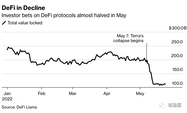 DeFi最雄心勃勃的实验之一的崩溃,使该行业的总价值减少了830多亿美元,因为投资者逃往更安全的避风港。