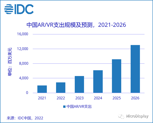 IT之家了解到,IDC 预测,2021 年中国 AR / VR 市场 IT 相关支出规模约为 21.3 亿美元,并将在 2026 年增至 130.8 亿美元,为全球第二大单一国家市场。