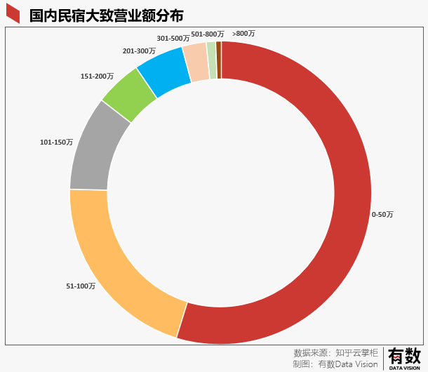 上游旅游业没有多余的游客,下游民宿业自然也难有收入,再加上民宿前期投入大于酒店,接近四分之三的民宿短期内营业额连100万都没有。