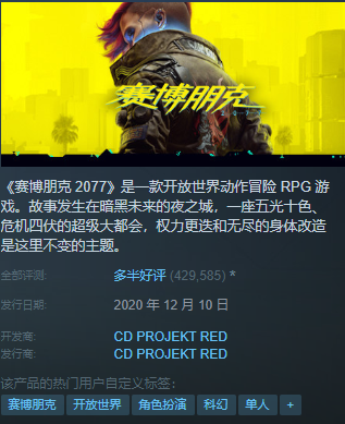 42万条评论呈“多半好评”,或许这才是一个正常的2077