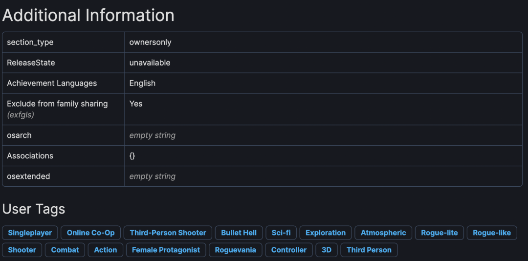 又一款PS独占或将登陆PC。PS平台的第一方独占,由Housemarque开发的Rougelite动作射击游戏《Returnal》,似乎出现在了Steam平台。根据SteamDB的数据显示,这款代号为“Oregon”的游戏,不仅“第三人称”、“Rougelite”、“女性主角”等标签十分符合,“ richpresence”中出现的很多标记同样也都符合本作内容,而且“薛西弗斯之塔”也恰巧是《Returnal》刚刚推出的“无尽模式”名称。虽然一切都指向《Returnal》,但官方目前还没有任何相关说明,而且就算真要出应该也没那么快,毕竟...《神秘海域》还在那吊着呢。