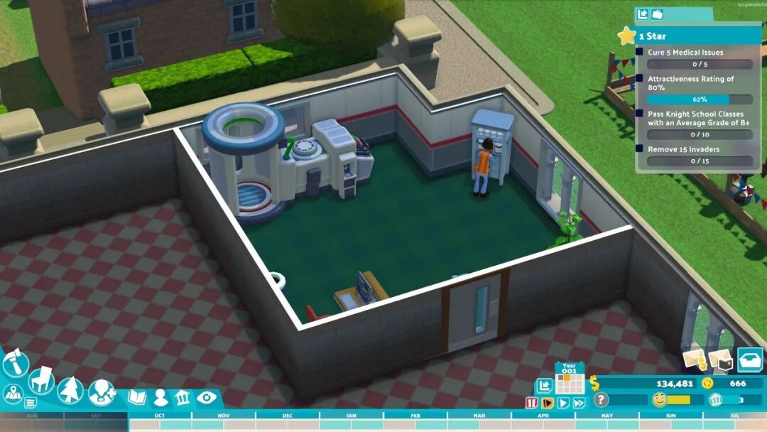 就像斯皮芬多引入的贷款跟天气一样,骑士学院关卡引入了学生的伤病机制。可能是因为单膝礼跪得太多,本关的骑士学徒会在授课过程中频繁弄伤膝盖,把学校的医务室挤爆。有那么一瞬间,这游戏似乎又变回了《双点医院》。