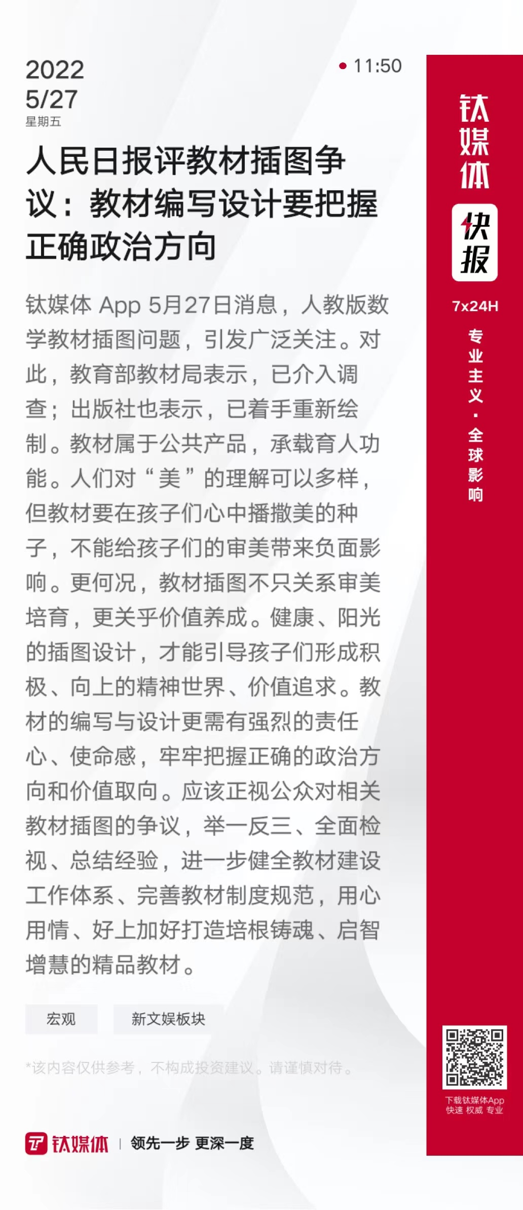 人民日报评教材插图争议:教材编写设计要把握正确政治方向