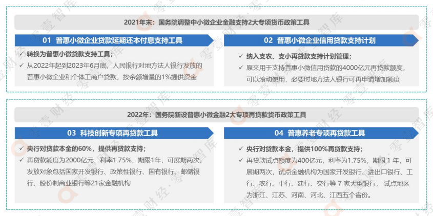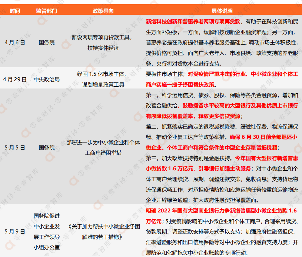 5月下旬,国务院与金融监管部门密集召开了一系列稳住经济大盘会议,决议涵盖了小微企业税费减免、出台专项再贷款创新货币政策工具、加快小微信贷投放力度等具体要求。梳理发现,近一周所发布的超强纾困新政主要源自下述3个时点的经济部署会议:第一项是国务院在5月23日召开的常务会议,明确指出:“进一步部署稳经济一揽子措施,努力推动经济回归正常轨道、确保运行在合理区间”。特别强调的是,会议决定加大对于中小微企业的金融扶持力度,稳定实体经济基本盘;第二项是央行、银保监会在5月24日召开了两场信贷工作部署会议,一天之内连续两场会议,引导金融机构全力以赴加大贷款投放力度,进一步加大对中小微企业和个体工商户的支持力度;第三项是国务院在5月25日召开的“全国稳住经济大盘电视电话会议”,李克强总理强调要扎实推动稳经济各项政策落地见效,保市场主体保就业保民生,确保经济运行在合理区间。“小微爆发年”是零壹智库自2020年疫情爆发以来的专项研究,目前已连续三年发布相关研究成果。结合年初银保监会出台的《关于银行业保险业数字化转型的指导意见》,今后将针对普惠小微金融的破局与创新,持续加强跟踪解读。一、最新政策:小微贷款支持工具额度和比例翻倍,国有大行新增1.6万亿针对疫情管控下的实体经济发展难题,5月23日召开的国务院常务会议决定,将实施6方面33项措施,具体包括:一是财政及相关政策、二是金融政策、三是稳产业链供应链、四是促消费和有效投资、五是保能源安全、六是做好失业保障、低保和困难群众救助等工作。具体来看,最核心的纾困政策体现在下述两方面:一是财政政策。国务院在5月初提出,针对餐饮、零售、旅游、民航、公路水路铁路运输等特困行业,在二季度实施暂缓缴纳养老保险费。此后在5月23日,国务院再次提出,在更多行业实施存量和增量全额留抵退税,增加退税1400多亿元,全年退减税总量2.64万亿元;二是结构性货币政策。国务院常务会议决定,2022年将普惠小微贷款支持工具额度和支持比例增加一倍。零壹智库通过疫情以来的小微信贷政策跟踪研究,目前已梳理形成下述4个小微金融专项货币政策工具,其中科技创新与普惠养老是两项新设立的专项再贷款工具,由国务院在2022年4月份宣布推出,也是应对2022年以来的疫情反复管控态势,旨在扶持实体中小微企业。从金融政策的连续性导向来看,本次国务院重磅宣布的小微金融专项扶持并非突发行为,而是通过连续数月,均出台有关小微企业减税让利、数字化转型支持、数字经济拉动提升等一系列扶持政策。据零壹智库的不完全统计,自2022年第二季度开始,国务院与各级政府部门相继强调扶持小微企业的政策导向,加大对于小微企业与个体工商户的扶持力度。尤其是国务院在5月初明确提出:“国有大型银行新增普惠小微贷款1.6万亿元,引导银行加强主动服务”。鉴于此,在业绩考核指标的引领下,2022年下半年商业银行与外部金融科技公司将进一步加强线上小微场景、生态平台与数据风控合作,共塑可持续发展的小微生态体。二、力保小微:强化担保与保险增信价值,确保二季度经济正增长“中小企业能办大事”,这句话出自习近平在2021年中国国际服务贸易交易会全球服务贸易峰会上的致辞。近年来,国家高度重视中小微企业的发展,明确指出“我国中小企业有灵气、有活力,善于迎难而上、自强不息”。作为我国实体经济的“毛细血管”,海量的中小微企业成为各地政府部门的首要扶持对象。此前,零壹智库在发布的《中国数字化小微金融创新实践报告(2021)》报告中指出——截至2021年末,我国市场主体突破1.5亿户,其中个体工商户就已经突破1亿户;新增数量近2000万户,同比增速为6.41%。同时,根据国家统计局披露的第四次全国经济普查系列报告,我国中小微企业法人单位约为2800万家。图 2:2010-2021年我国个体工商户新增数量规模与增速(单位:户、%)资料来源:零壹智库《中国数字化小微金融创新实践报告(2021)》国务院在5月25日召开的全国稳住经济大盘电视电话会议中,提出多项经济金融政策导向要求。从普惠小微金融视角来看,在加强小微信贷担保、保险等增信机制以及推进信贷投向力度方面,释放了强劲的政策信号,下面简要摘取涉及金融领域的十项要点:2、发挥政府性融资担保机构增信作用。地方各级政府性融资担保机构对符合条件的交通运输、餐饮、住宿、旅游等行业的中小微企业和个体工商户,提供融资担保支持。2022年,将上述符合条件的融资担保业务纳入国家融资担保基金再担保合作范围;3、加大创业担保贷款贴息力度。县级以上地方财政部门应按规定及时补充创业担保贷款担保基金,或由政府性融资担保机构为符合条件的创业个人和小微企业提供担保增信,支持创业担保贷款扩面增量;6、强化保险、担保、信贷政策协同,各省级财政部门要积极与中国农业再保险股份有限公司、国家融资担保基金有限责任公司、相关商业银行对接“财金-聚农贷”业务;8、要在防控好疫情同时完成经济社会发展任务,防止单打一;10、各地二季度经济主要指标,将由国家统计部门依法依规实事求是公布。在本次会议中,国务院有关部委公布的一组数据,充分显示出当前经济运行中的难题——“4月份规模以上工业增加值同比下降2.9%,