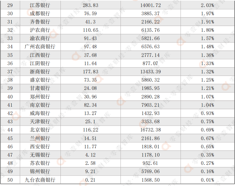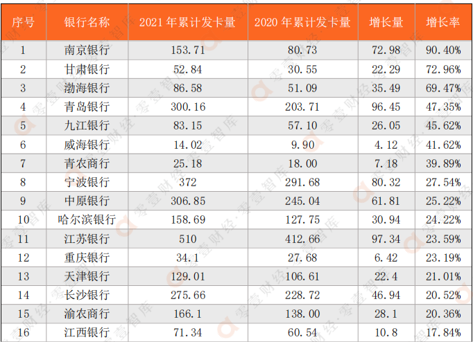 一、信用卡累计发卡:五家银行过亿,南京银行增长超9成