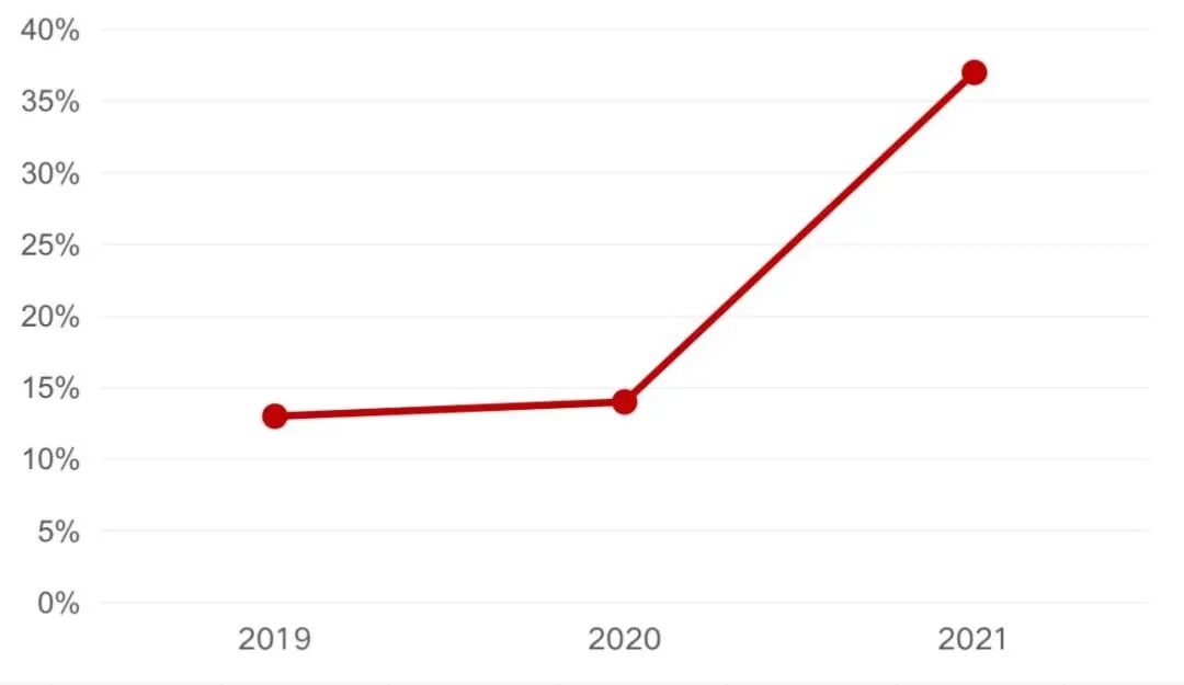 根据2022年新浪VR和猎聘发布的《元宇宙人才发展白皮书》,2019 至 2021 年,元宇宙领域新发职位数持续增长,在元宇宙概念爆发的 2021 年增幅达到 37.07%。