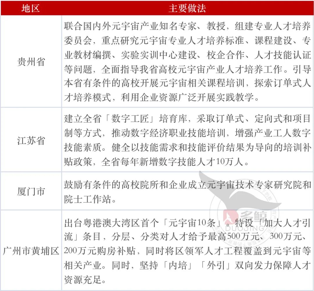 表 2 部分地区支持元宇宙人才培养的主要做法