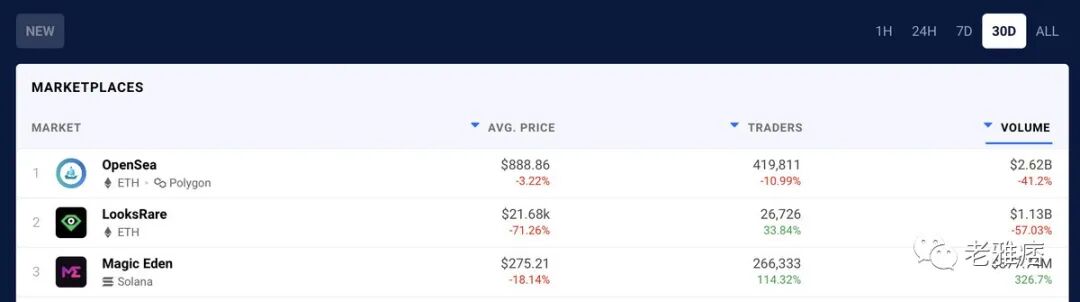 从大多数指标来看,OpenSea 仍然是最大的市场。表:DappRadar