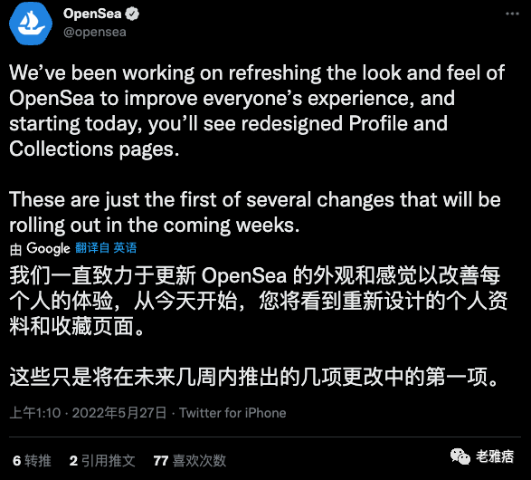 最大的NFT市场之一OpenSea已经重新设计了其简介和收藏页面,目的是使网站更容易浏览,并使实际的NFT本身成为关注的中心。在其周四的公告中,该公司表示这些重新设计只是该公司完善其网站工作方式的 "开始"。