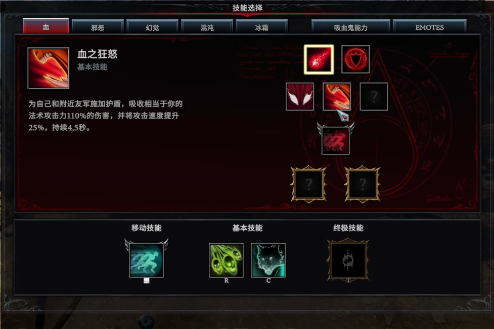 《V Rising》里众多的技能是这个战斗系统最有趣的一点,《V Rising》中如果你成功击杀BOSS,那么你就可以获得BOSS的一个或者多个技能,而游戏最主要的战斗思想就是通过不同的Biuld(玩法构筑)以此来最大程度上的提升自己,不过遗憾的是法术类技能每次只能带两个,这在一定程度上限制了玩家的Biuld种类,好在除了法系技能,《V Rising》中还有武器的技能,这也能稍微提升战斗的多样化。