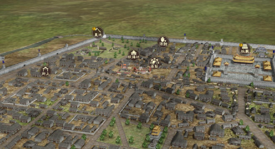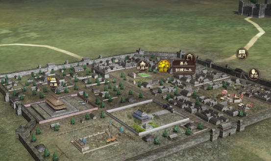 但是大部分时间里,玩家根本看不到武将执行任务的身影,虽然每座城镇都设计了市场、农田等区域,但是更多时候这些城镇更像是一个背景,UI与场景画风的差异,导致明明这些选项是根据城市建筑布置的,却显得像瞎标注的一般,缺乏交互感。![]()