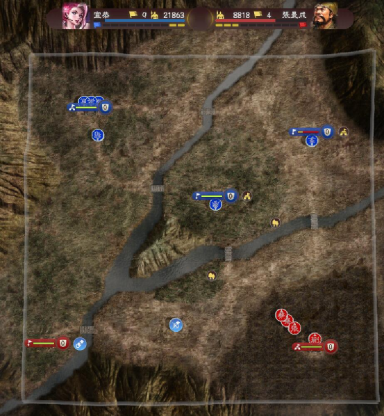 都是两军相交直接单开一个小地图,有据点有营垒,每支部队都能且只能释放一个战法,释放战法需要消耗指挥点数,而指挥点数会随着战斗的推进逐渐累积,还都是即时战略。![]()