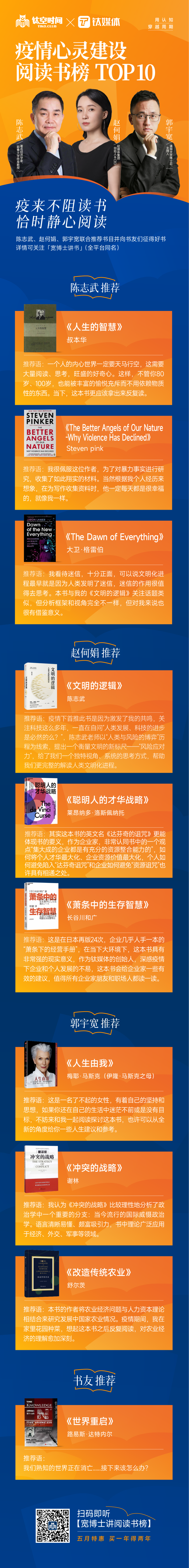 ÕԺξ꣺³ÂÖ¾Îä¡¶ÎÄÃ÷µÄÂß¼¡·¡¢À³°ºÄɶࡤÂå˹ÅåÄÉÍС¶´ÏÃ÷È˵IJŻªÕ½ÂÔ¡·¡¢³¤¹È´¨ºÍ¹ã¡¶ÏôÌõÖеÄÉú´æÖǻۡ·¹ùÓî¿í£ºÒÁ¡¡¤Âí˹¿Ë֮ĸ÷Ү¡¤Âí˹¿Ë¡¶ÈËÉúÓÉÎÒ¡·¡¢Ð»ÁÖ¡¶³åÍ»µÄÕ½ÂÔ¡·¡¢Êæ¶û´Ä¡¶¸ÄÔ촫ͳũҵ¡·¡£¡¶ÈËÉúµÄÖǻۡ·Õâ±¾Êé×÷ÕßÊå±¾»ªÒÔ¡°ÓÅÑŵÄÎÄÌ塱£¬´ÓÊÀË׵ĽǶÈ̽ÌÖÁËÈËÉúÓ¦×ñѵÄÔÔò£¬ÊéÖеĵÀÀí¿´ÆðÀ´¼òµ¥£¬ÊµÖÊÉÏÈ´ÊÇ̽ÌÖÊÀË×Éú»îµÄÕÜѧ£¬±ÈÈ磺½ðÇ®£¬È¨Àû£¬ÈçºÎ׷ѰÐÒ¸£µÈµÈ¡£ÕâÕýÊÇÏÖÔÚÉç»áÖдó¼Ò¾«ÉñÉÏËùÐèÒªµÄ£¬ºÜ¶àÈË×ßÔÚע֨׷ÇóÎïÖÊÉϵķáӯȴºöÂÔÁ˾«ÉñºÍÄÚÐÄÊÀ½çµÄØÑ·¦£¬ÆäʵÏñÏÖÔÚÒßÇé֮ϺܶàÅóÓÑÃǶ¼·â¿ØÔڼҵȣ¬Ã»ÓÐÁËÆµ·±µÄÉç½»ºÜ¶àÈ˶¼¸Ð̾¾õµÃºÜ¹Â¶À£¬ÆäʵÕâÖÖÏÖÏó¾ÍÕÛÉä³öÁËÒ»ÖÖÄÚÐľ«ÉñÊÀ½çµÄ¡°Æ¶ñ¤¡±£¬ÒªÖªµÀÎïÖʵĶ«Î÷ʵ¼ÊÉÏÊDz»»áÍêÈ«Ôö¼ÓÒ»¸öÈ˵ijäʵ¸Ð¡¢ÐÒ¸£¸ÐµÄ£¬Éú»îµÄÖÊÁ¿Ò²²»»áÒò´ËÕæÕýµØÌá¸ß£¬ËùÒÔ×¢ÖØ¾«ÉñÊÀ½çµÄ·á¸»ÊǺÜÖØÒªµÄ£¬Èç¹û×î½üÄãÒ²Õ¬ÔÚ¼Ò£¬¿ÉÒÔ¿´¿´Õâ±¾³äÂúÈËÉúµÄÖǻۣ¬ÎªÎÒÃÇÖ¸³öÐÒ¸£µÄ·½ÏòµÄ¡¶ÈËÉúµÄÖǻۡ·£¬Ò²ÐíÄã»á·¢ÏÖ¾«ÉñÉϵķáÓ¯¸Ð²ÅÊÇÉú»îÓ¦¸Ã×·ÇóµÄ±¾Õæ¡£